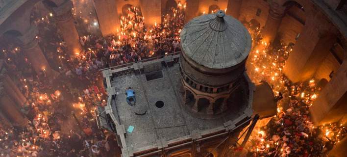 Χιλιάδες ήταν οι πιστοί που παρακολούθησαν την Τελετή Αφής του Αγίου Φωτός στα Ιεροσόλυμα.