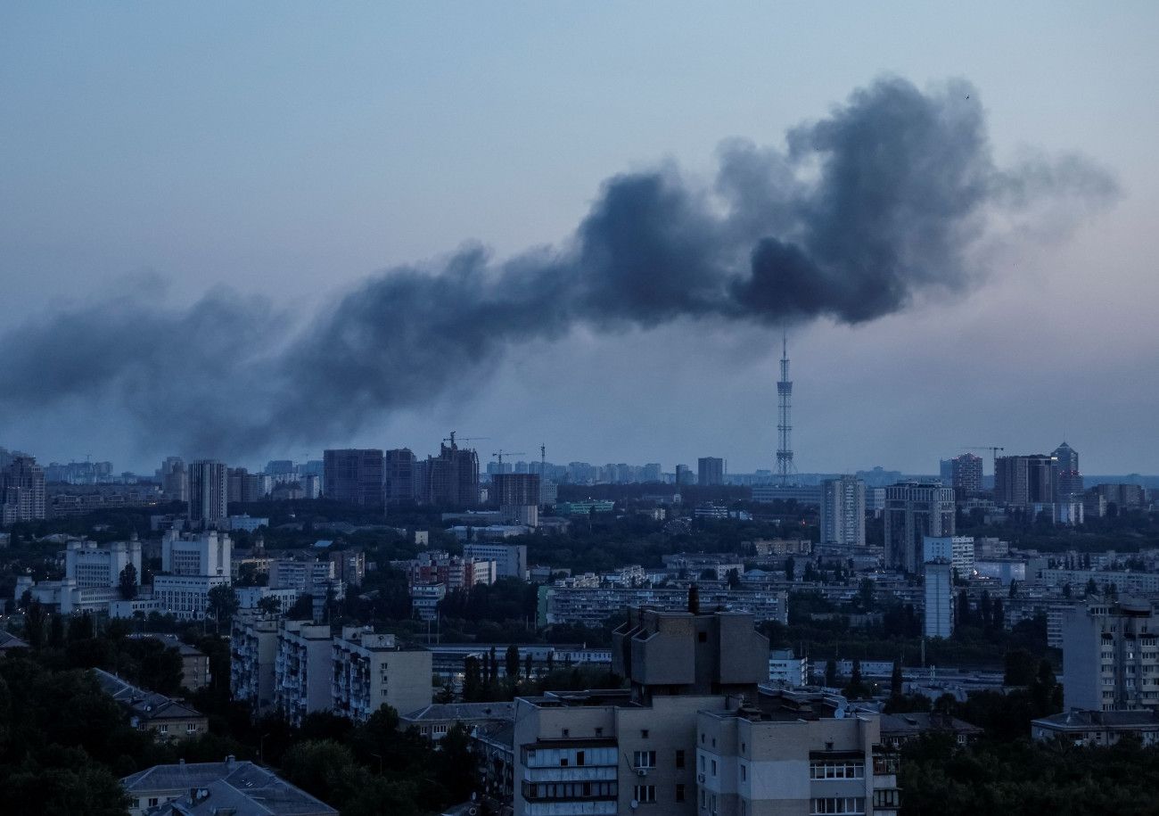 Ο Τκατσένκο δήλωσε ότι φωτιά ξέσπασε επίσης σε πολυκατοικία σε δυτική συνοικία. Είπε ότι θραύσματα από μη επανδρωμένα αεροσκάφη είχαν εντοπιστεί σε τρεις συνοικίες.