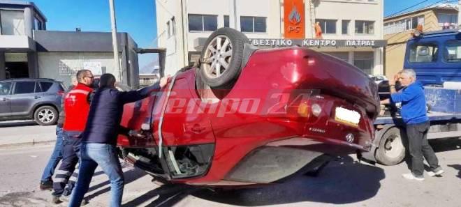 Το ταξί μετά την σύγκρουση τούμπαρε.